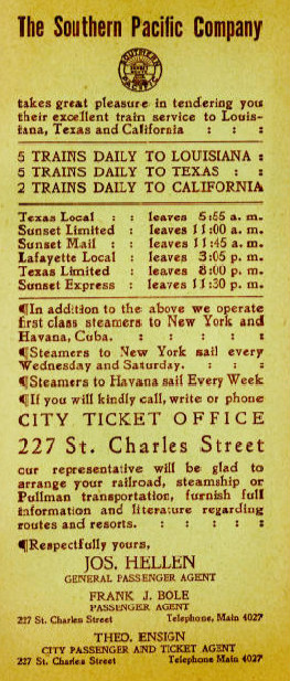 Originally used as the Illinois Central depot, but eventually by other lines, as well, this station was located on the site of the current Union Passenger Terminal on Loyola Avenue; picture ca. 1920. |