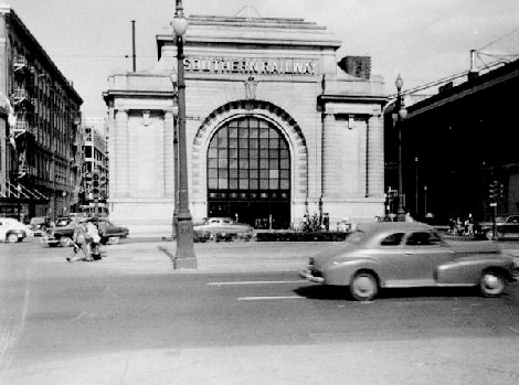 The Southern Railway terminal, Basin and Canal Streets; above photo ca. 1920's.; below photo ca. 1950. |
