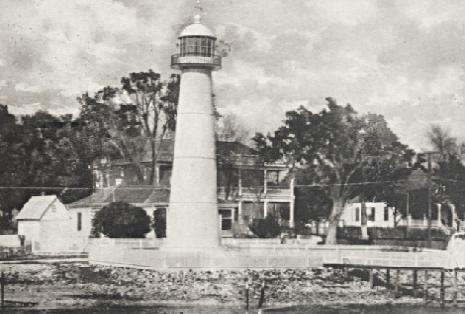 The Biloxi Lighthouse sits in front of the Collins Hotel, 1909 |