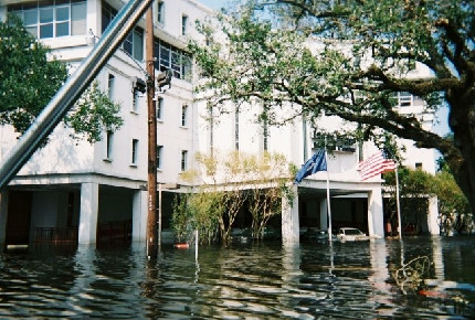 | Methodist Hospital, New Orleans East, flooded from the levee failures, 2005. It has not re-opened. |