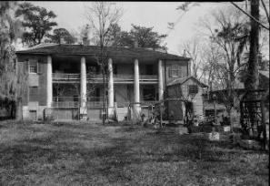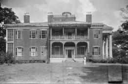| Above and below, Gloucester House, still standing, built 1798-1803, the home of early Mississippi Territorial Governor, Winthrop Sargent, who died on a riverboat near Natchez and is buried on the grounds. Photos below taken in 1940, top right is of rear of house. |