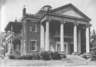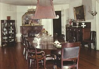 | Above, Melrose, still standing, postcard ca 1935; below, Melrose's dining room in the 1950's. The house was built in the 1840's by John McMurran. |