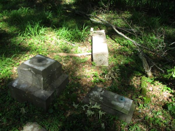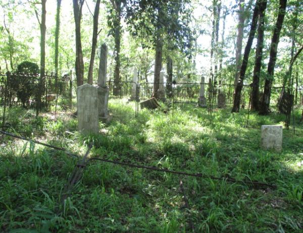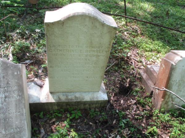 | Rodney Cemetery is on the crest of a hill behind Rodney Presbyterian Church. Rodney, Mississippi was a prosperous town in the 19th century. It was the busiest river port between New Orleans and St. Louis and it missed becoming the capital of the Mississippi Territory by only 3 votes. The Civil War, fires and yellow fever epidemics took their toll, but Rodney's population started declining in earnest after the Mississippi River changed course in the late 1860's, leaving a river port town with no river. People say there's something very moving about the ghost town of Rodney. And there's something deeply spiritual about the old cemetery on the hill, with its tombstones askew, broken and leaning this way and that, in a losing struggle to remain as dignified as they were when placed by loving hearts all those many years ago. -- Nancy |