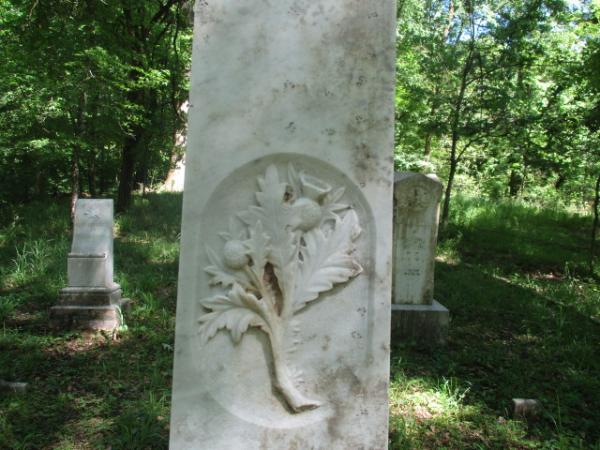 | Scotland's flower, the thistle, is on James Stewart's tombstone; he was born in Scotland in 1822; died in 1894. |